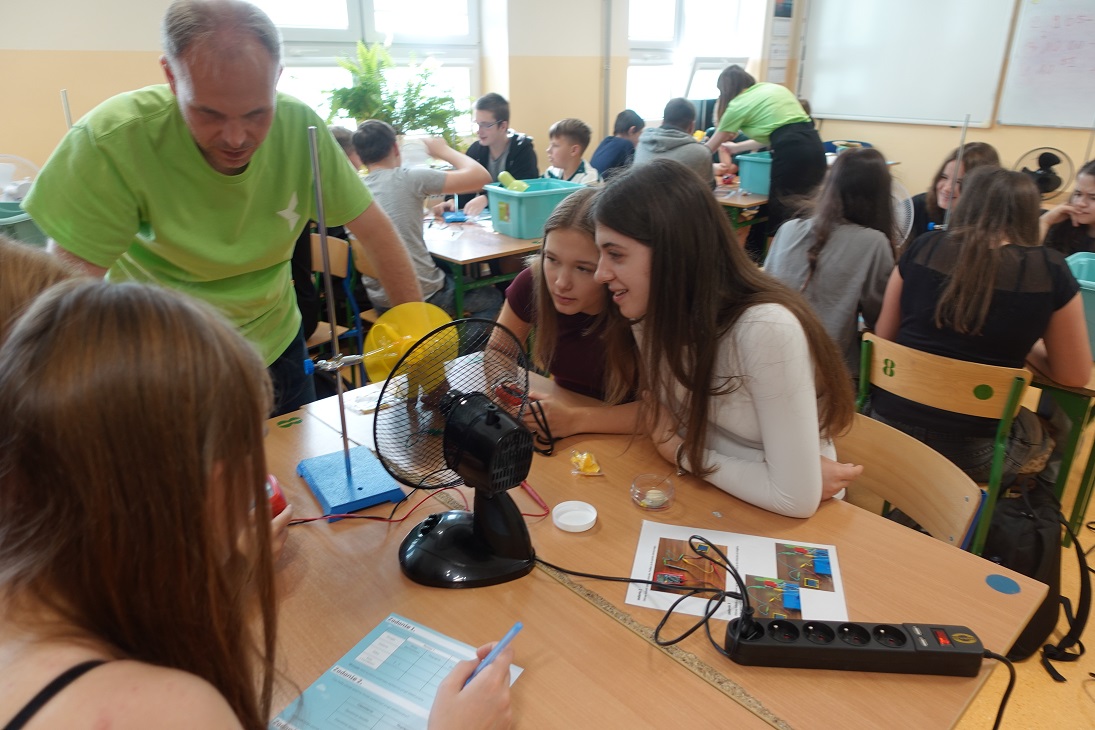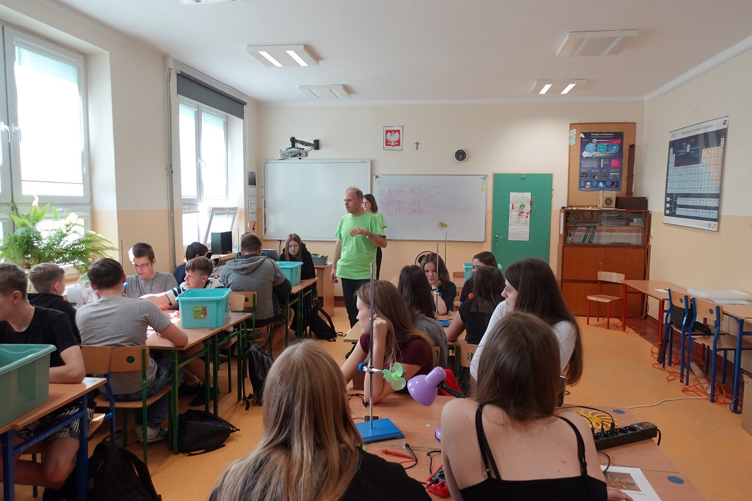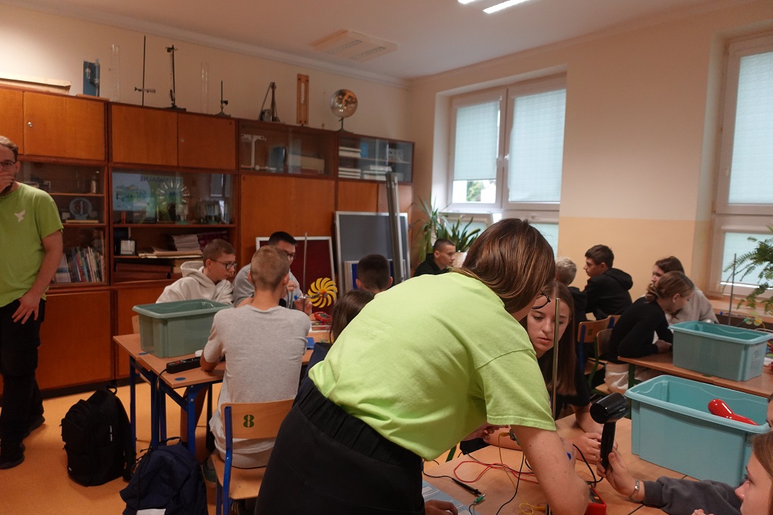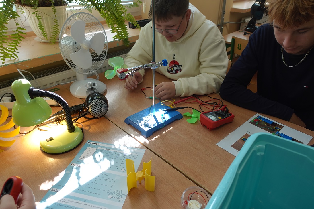 Uczniowie w czasie warsztatów przeprowadzili ciekawe doświadczenia dotyczące odnawialnych źródeł energii.