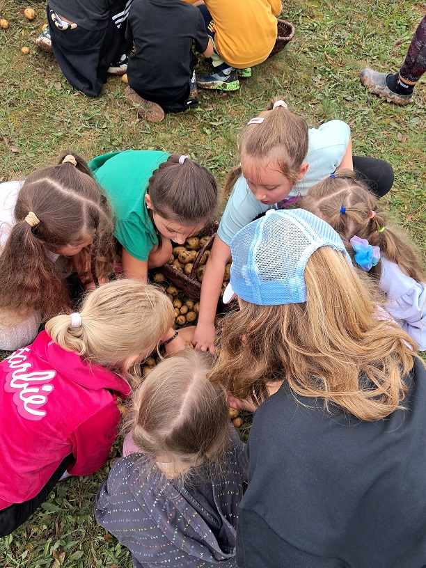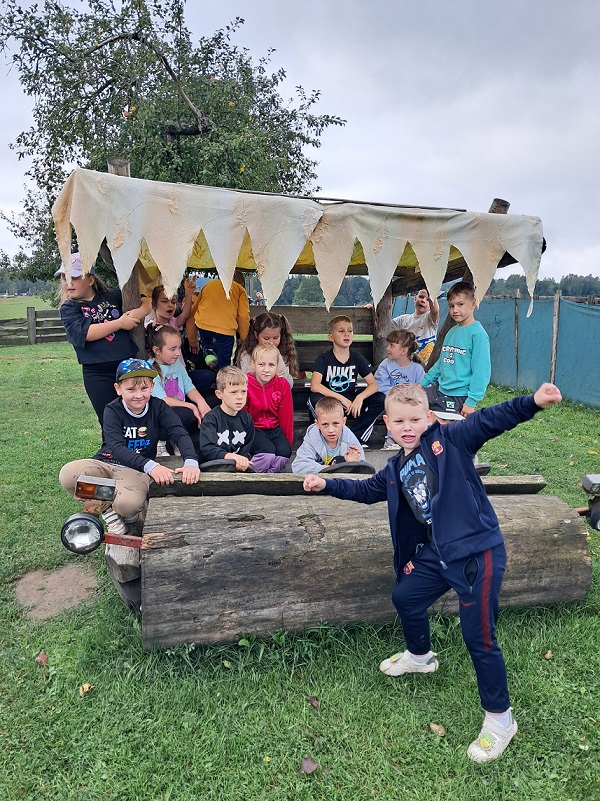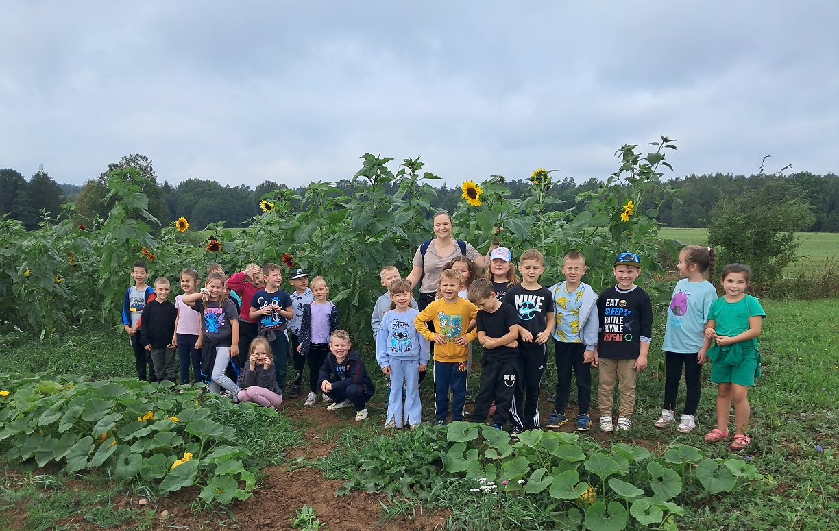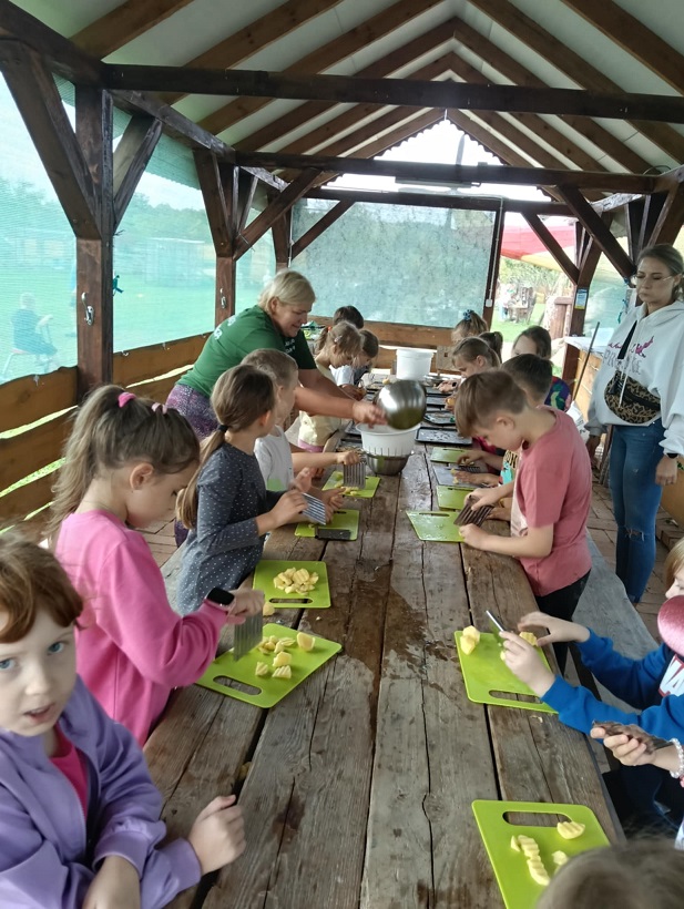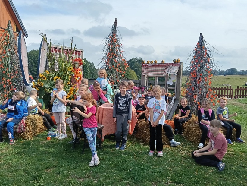 W piątek 12 września klasy 1a i 1d były na wycieczce w Siedlisku Bogdanka. Celem wycieczki było poszerzanie wiedzy na temat pracy rolnika oraz integracja uczniów. Dużą atrakcją było zwiedzanie ogrodu warzywnego, pola dyniowego, karmienie zwierząt, uczestnictwo w wykopkach oraz samodzielne przygotowywanie frytek z zebranych ziemniaków. Była to wspaniała okazja do lepszego poznania się dzieci podczas wykonywanych czynności i zabaw na terenie siedliska.