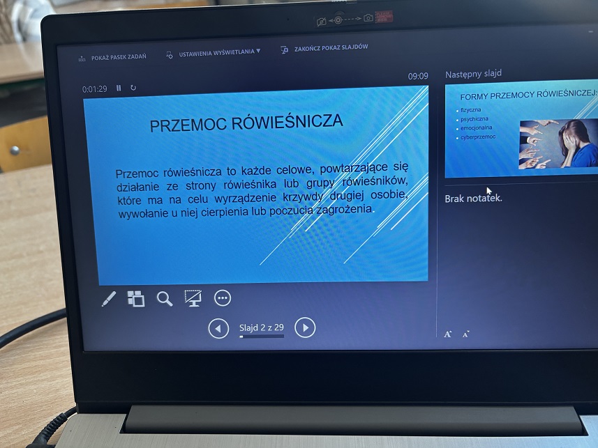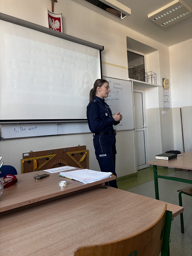 Spotkanie odbyło się w ramach działań zespołu ds. programu wychowawczo-profilaktycznego. Zajęcia prowadziły p. Anna Łazar i p. Magda Czarniecka z Komendy Policji.