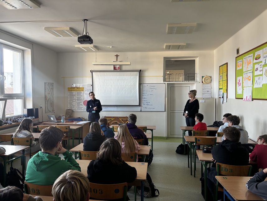 Uczniowie z zainteresowaniem wysłuchali prelekcji, a na zakończenie zadawali wiele pytań dotyczących pracy policji i zasad bezpieczeństwa.